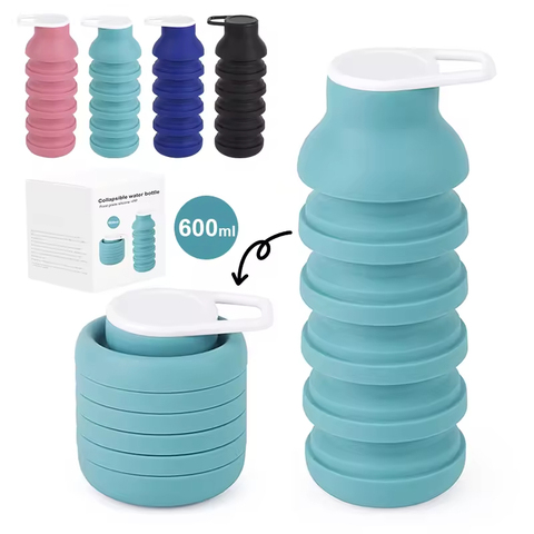 Produttore all'ingrosso bottiglia d'acqua pieghevole da 600ml ecologica in Silicone leggero da viaggio per escursioni in palestra bottiglia d'acqua